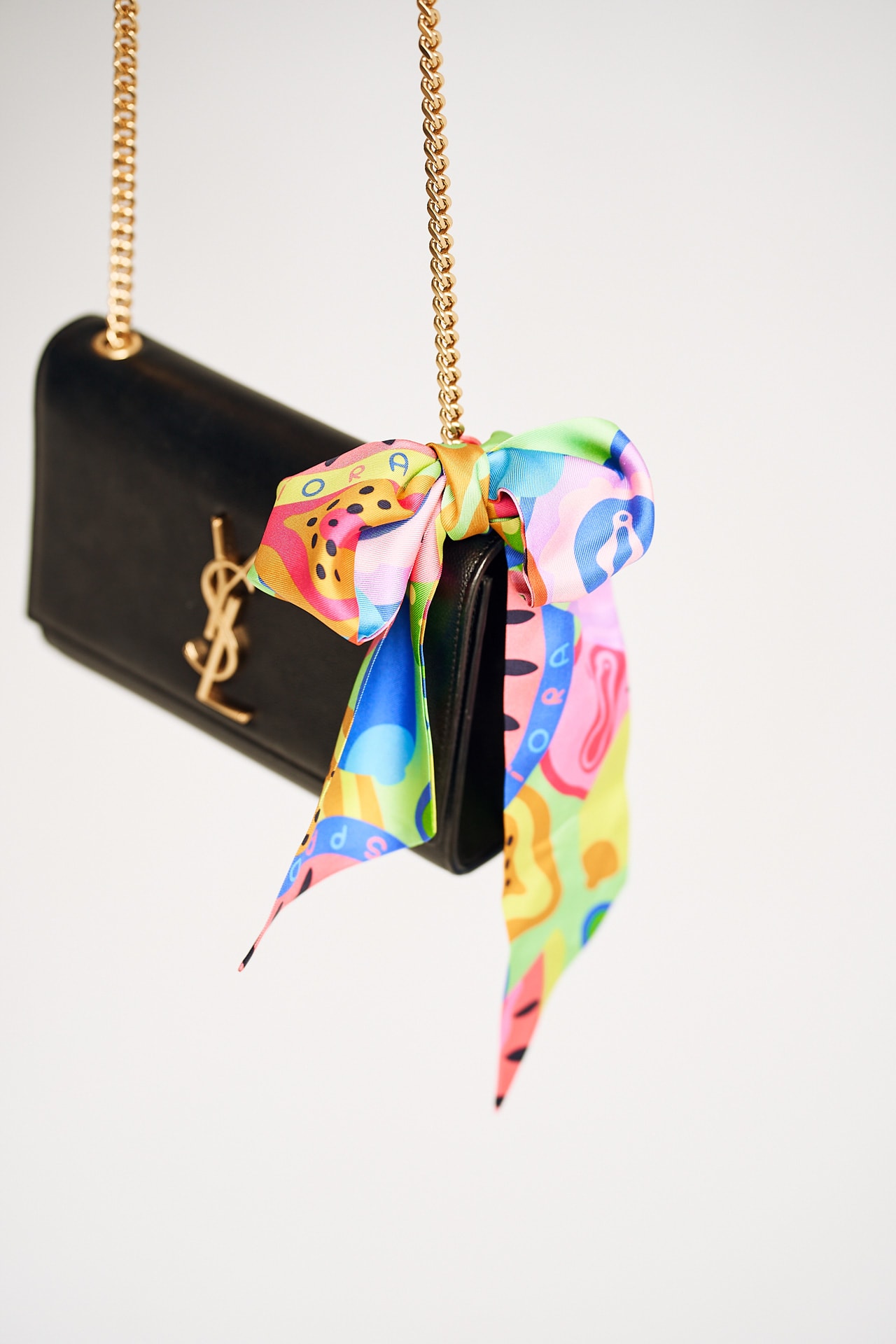 Wykonany z najlepszej jakości naturalnego jedwabiu o splocie twill doda uroku każdej torebce, fryzurze czy koszuli.