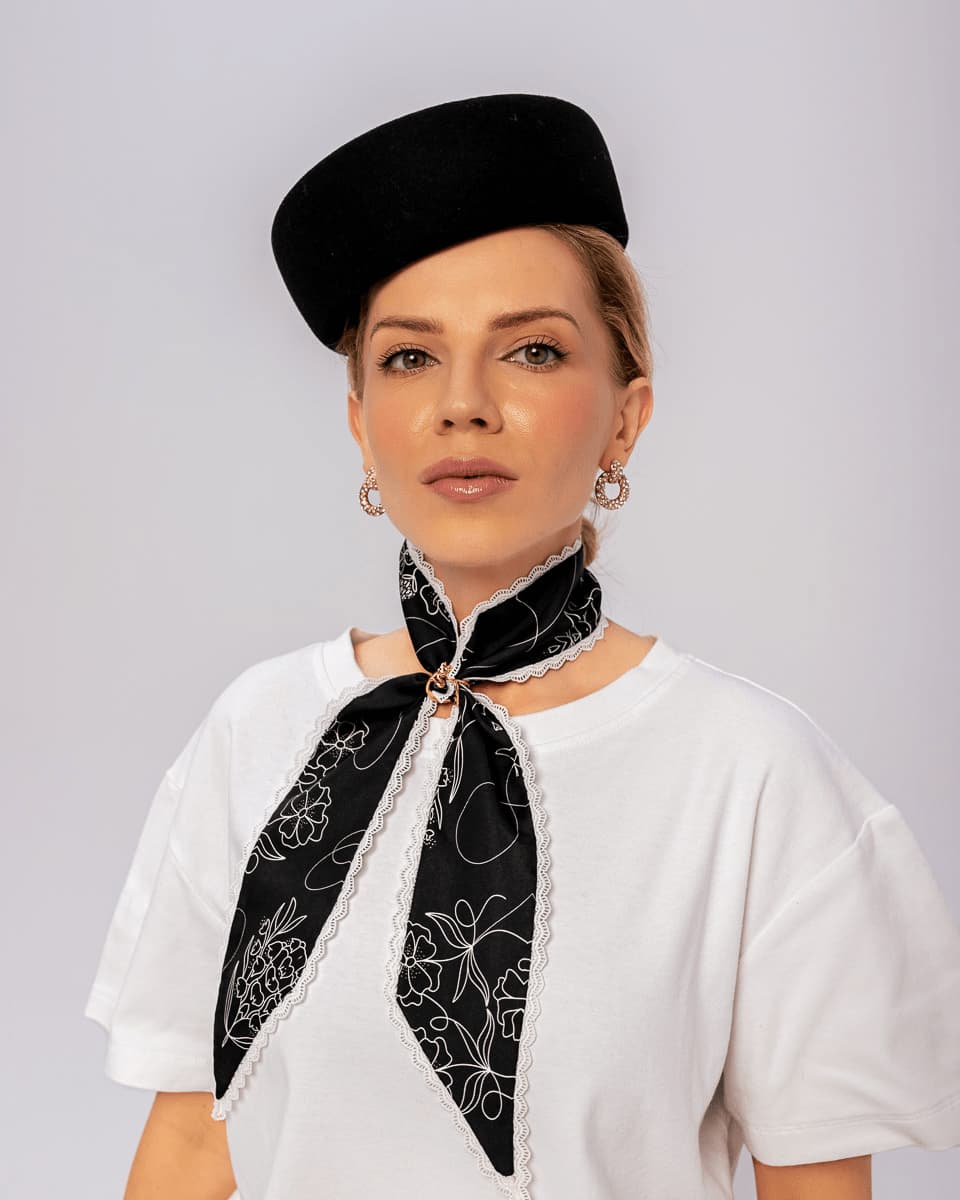Kolejna w naszej kolekcji jedwabna wstążka typu Twilly z Waszym ulubionym wzorem "Feminimal" czarna. Delikatne jedwabne twilly z koronką to kwintesencja kobiecej elegancji i subtelnego luksusu. Wykonane z najwyższej jakości naturalnego jedwabiu, zachwyca miękkością, lekkością i szlachetnym połyskiem. Wykończenie z finezyjnej koronki nadaje mu romantyczny charakter i wyjątkowy urok.