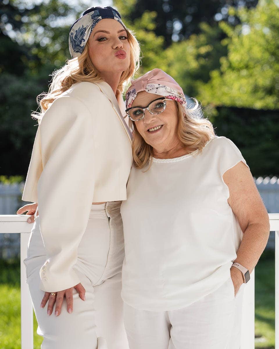 o gramaturze ( 16 momme), z podszewką o tej samej grubości. Jedwabny turban jest bardzo delikatny dla każdego rodzaju włosów niezależnie od tego czy nosimy go w dzień czy śpimy w nim w nocy. Gumka wszyta przez całą długość jedwabnego turbanu daje możliwość modyfikacji nasunięcia na głowę. Bez problemu można pod nim schować nawet najbardziej bujną czuprynę.