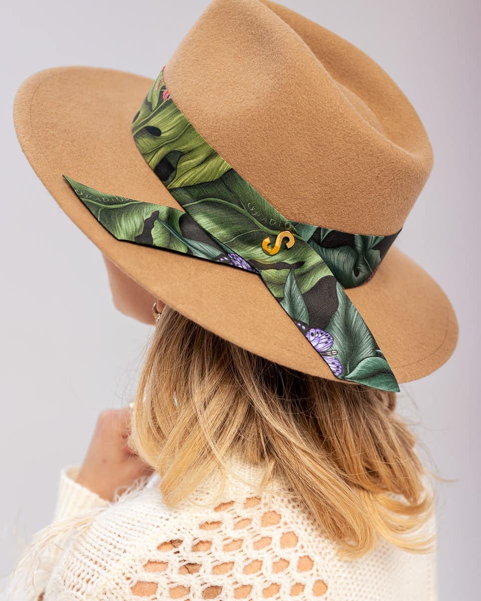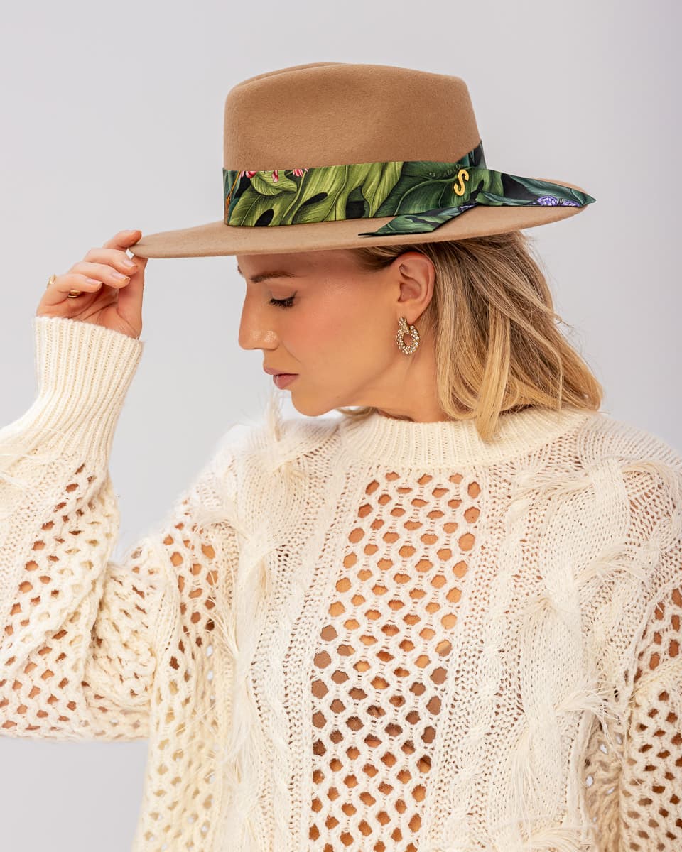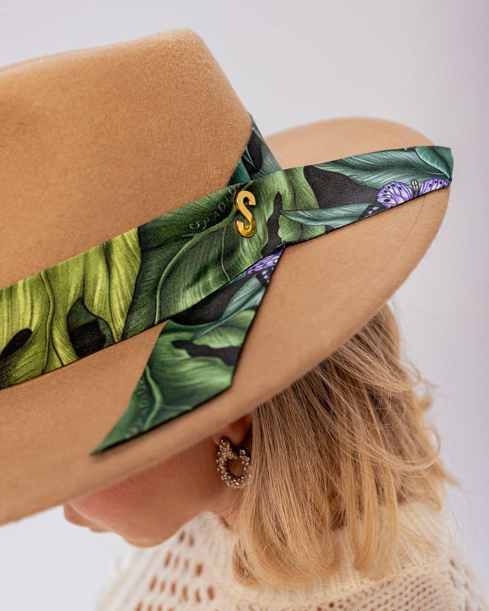 Wełniany kapelusz damski Bando to propozycja dla fanek nietuzinkowych dodatków z niebanalnym akcentem kolorystycznym. Pierwszy kapelusz, który personalizujesz w momencie zakupu. Wykonany w 100% z wysokogatunkowej wełny świetnie sprawdzi się zarówno w jesienno zimowych jak i w letnich stylizacjach. To absolutnie pierwszy taki kapelusz damski na rynku do którego sama wybierasz kolor jedwabnej szarfy czyniąc go niepowtarzalnym i jedynym w swoim rodzaju. Całość wykończona akcentem w postaci literki „S” w złotym kolorze. Szarfę z łatwością można odczepić od kapelusza i przewiązać ją w dowolny sposób.