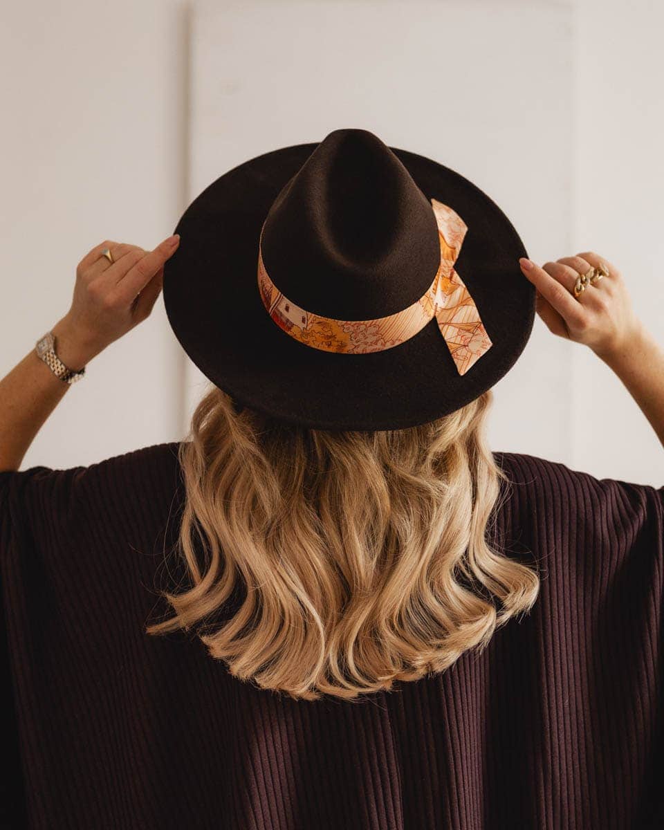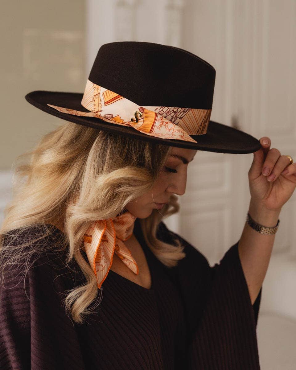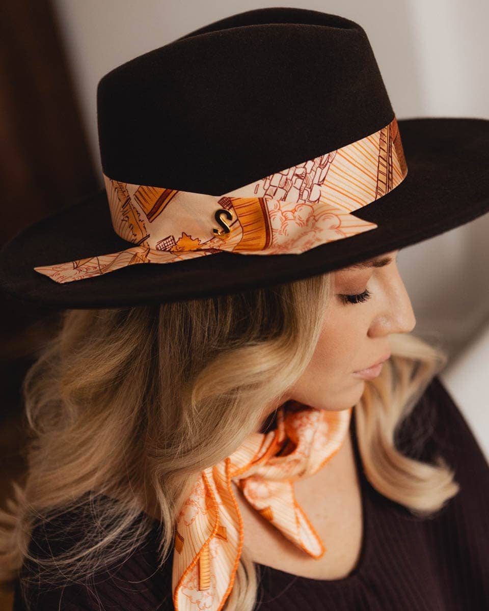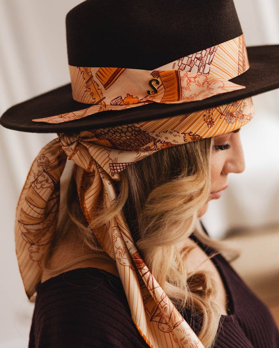 Wełniany kapelusz damski Vakero to propozycja dla fanek nietuzinkowych dodatków z niebanalnym akcentem kolorystycznym. Pierwszy kapelusz, który personalizujesz w momencie zakupu, Wykonany w 100% z wysokogatunkowej wełny świetnie sprawdzi się zarówno w jesienno zimowych jak i w letnich stylizacjach. To absolutnie pierwszy taki kapelusz damski na rynku do którego sama wybierasz kolor jedwabnej szarfy czyniąc go niepowtarzalnym i jedynym w swoim rodzaju. Całość wykończona akcentem w postaci literki „S” w złotym kolorze. Szarfę z łatwością można odczepić od kapelusza i przewiązać ją w dowolny sposób.