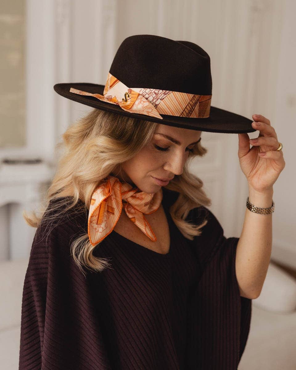 Każdy nasz kapelusz zawiera dodatkowo firmowy pokrowiec idealny do przechowywania. Wzór pokrowca dobierany jest losowo.
