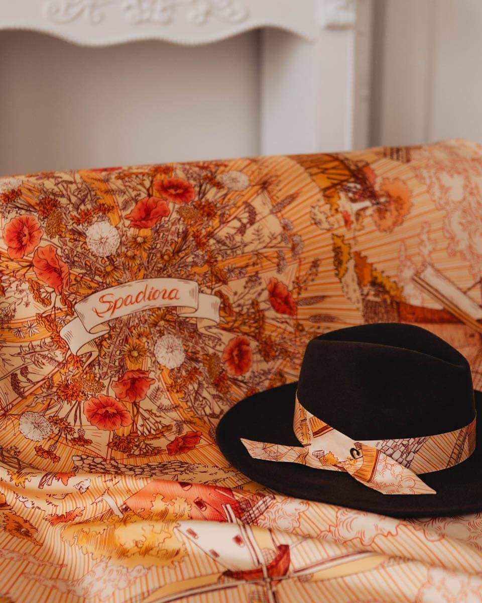 Produkt w całości zaprojektowany i uszyty ręcznie w Polsce, a jedwabna szarfa do kapelusza oraz pokrowiec powstały w pracowni krawieckiej Spadiory. Produkt najwyższej jakości stworzony z dbałością o każdy szczegół.