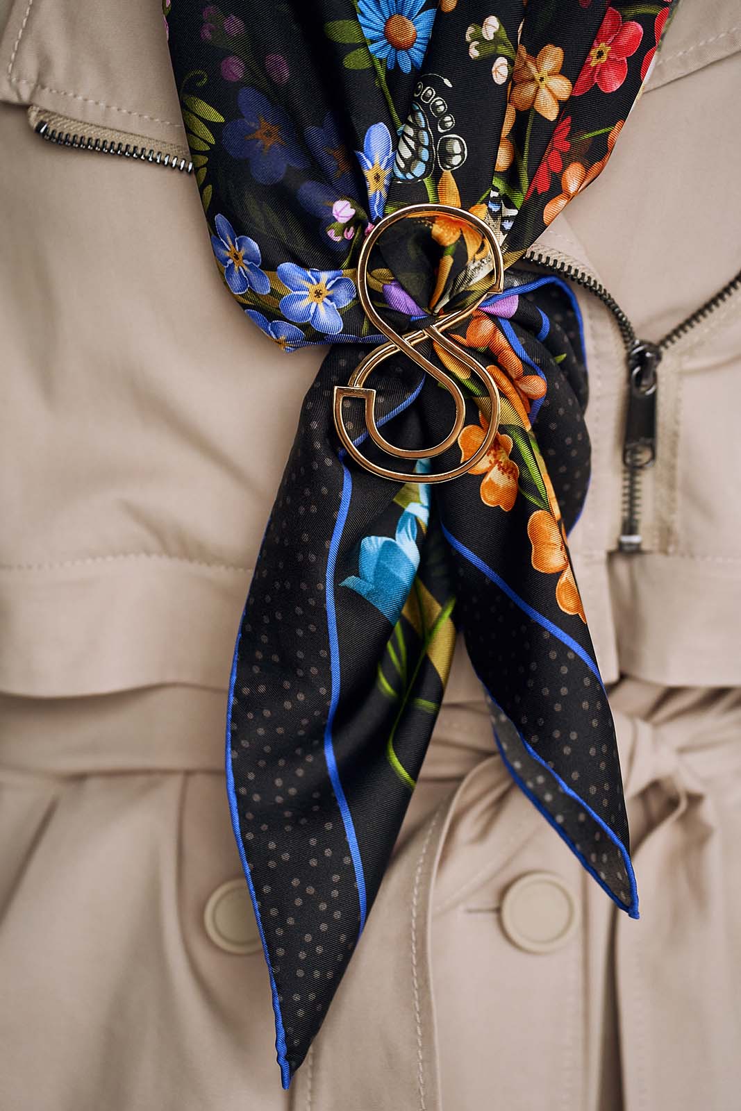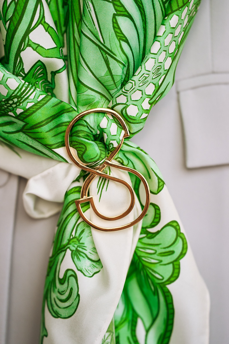 Cała kolekcja biżuterii do jedwabnych apaszek to autorskie formy marki Spadiora.