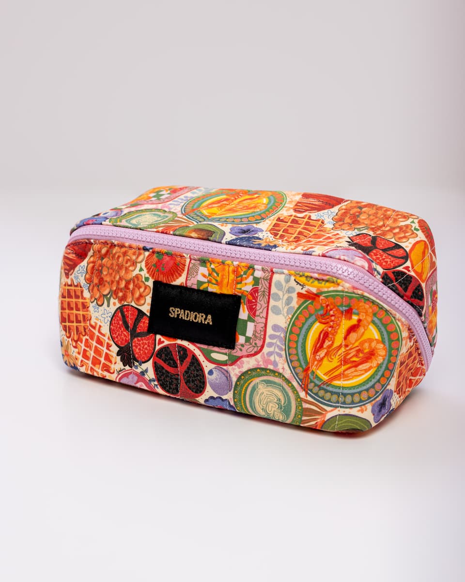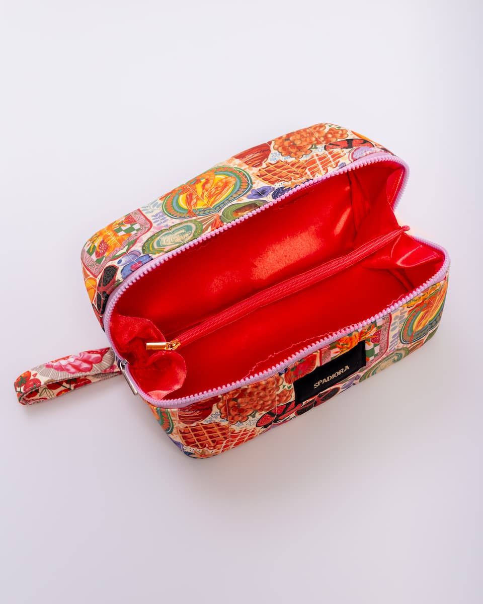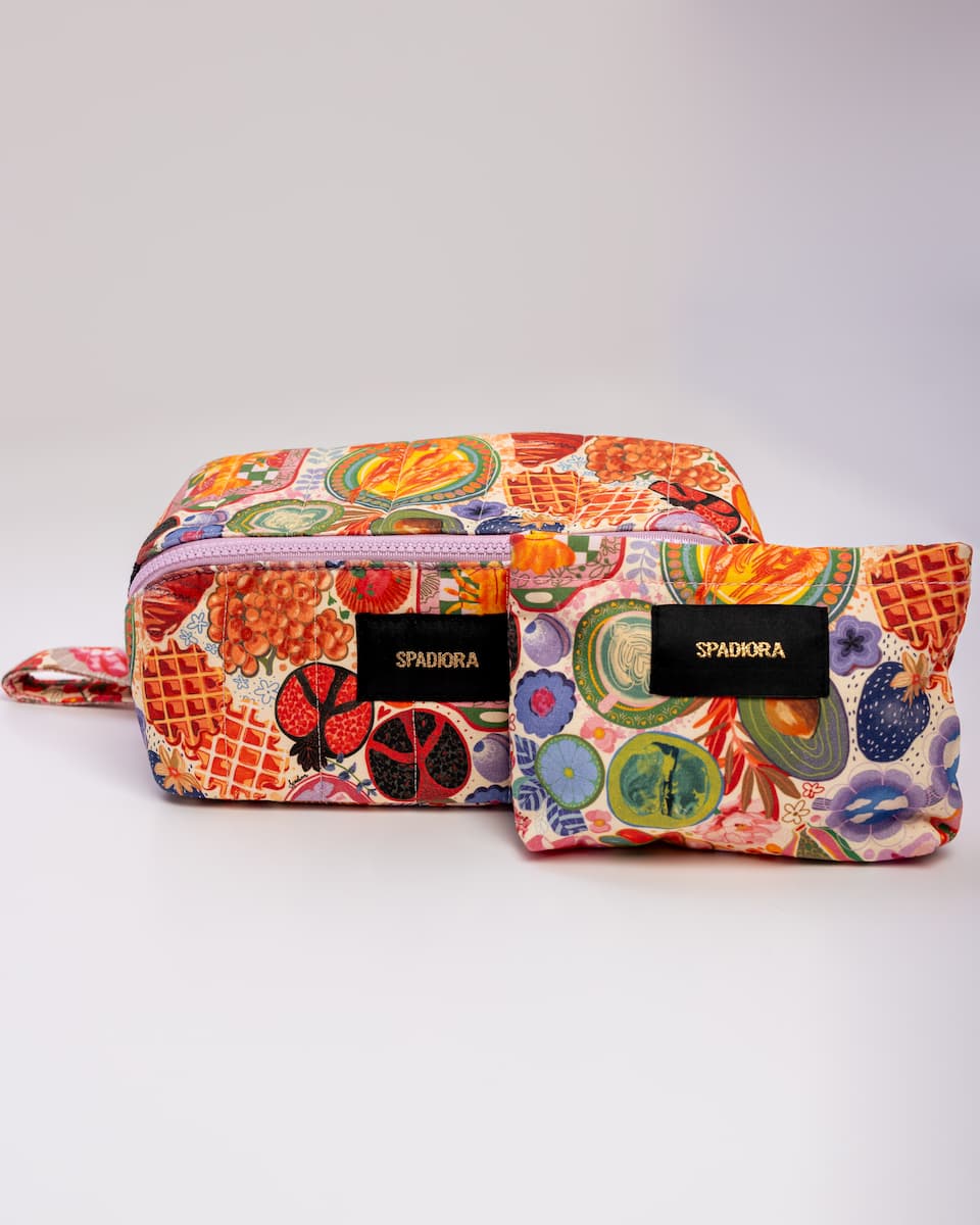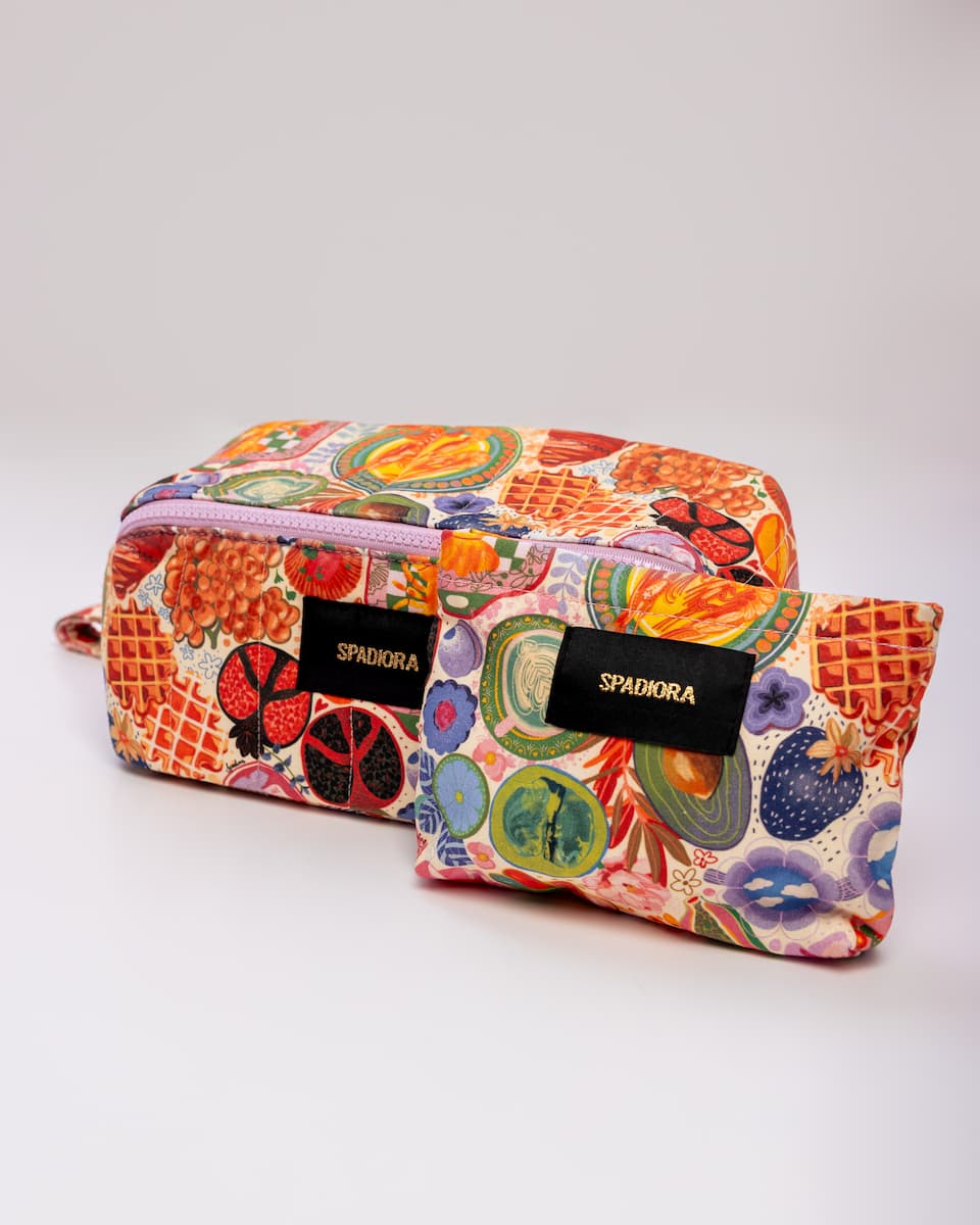 Stylowa i funkcjonalna duża kosmetyczka zaprojektowana z myślą o kobietach ceniących jakość i oryginalny design. Zapinana na zamek, zapewnia wygodny dostęp do zawartości oraz pełne bezpieczeństwo przechowywanych kosmetyków. Jej wyjątkowy wzór został stworzony przez polskie ilustratorki, dzięki czemu kosmetyczka wyróżnia się unikalnym, artystycznym charakterem. Praktyczne zapięcie z logo SPADIORA dodaje elegancji, a solidna rączka ułatwia przenoszenie zarówno w podróży, jak i na co dzień.