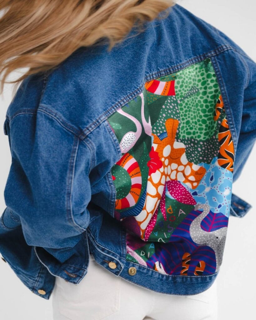 Są takie elementy garderoby, z którymi się nie dyskutuje. Każda z nas ma je w swojej szafie. Jedną z takich rzeczy jest kurtka jeansowa. Ta, którą stworzyliśmy w Spadiorze sprawi, że wyróżnisz się z tłumu stawiając jednocześnie na ponadczasową klasykę. Z przodu wygląda klasycznie, uszyta w Polsce z najlepszej jakości jeansu w intensywnie niebieskim kolorze. Wykończona złotymi, postarzanymi, guzikami z nazwą marki. Z tyłu ozdobiona jest jedwabnym panelem w jednym z trzech kultowych wzorów Spadiory, dzięki któremu stanowi unikatowy element garderoby, wprost nie do podrobienia, bo każdy fragment jedwabiu jest nieco inny.