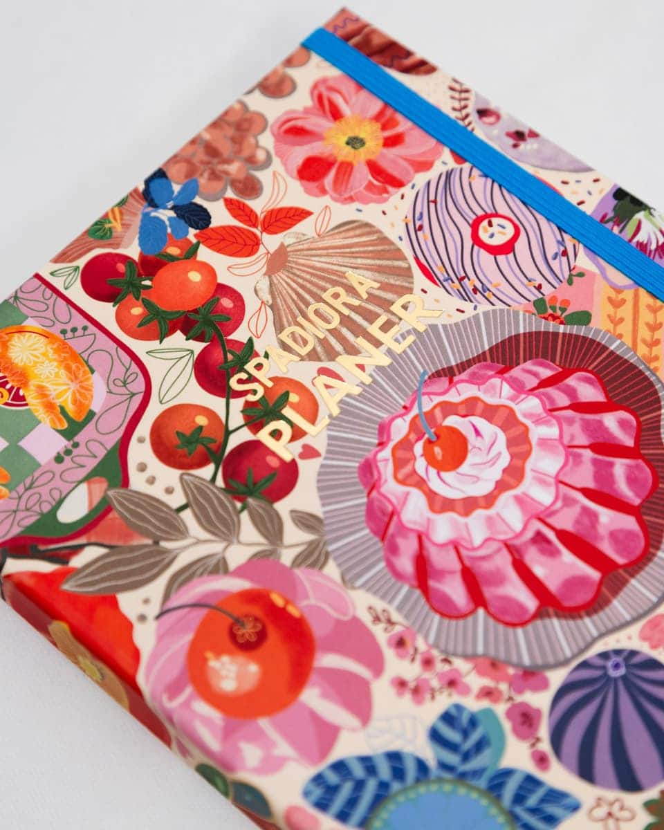 Każdy planer ma gumkę w pasującym kolorze, która świetnie trzyma notes w ryzach. Dwie różnokolorowe wstążki, które pełnią rolę zakładki aby zaznaczać najważniejsze czy bieżące zapiski oraz gumkę na długopis. Na tylnej okładce znajdziesz kieszonkę idealną na dokumenty czy luźne kartki oraz pomocniczą wkładkę z rozpisanym kalendarzem na rok 2026 z linijką.