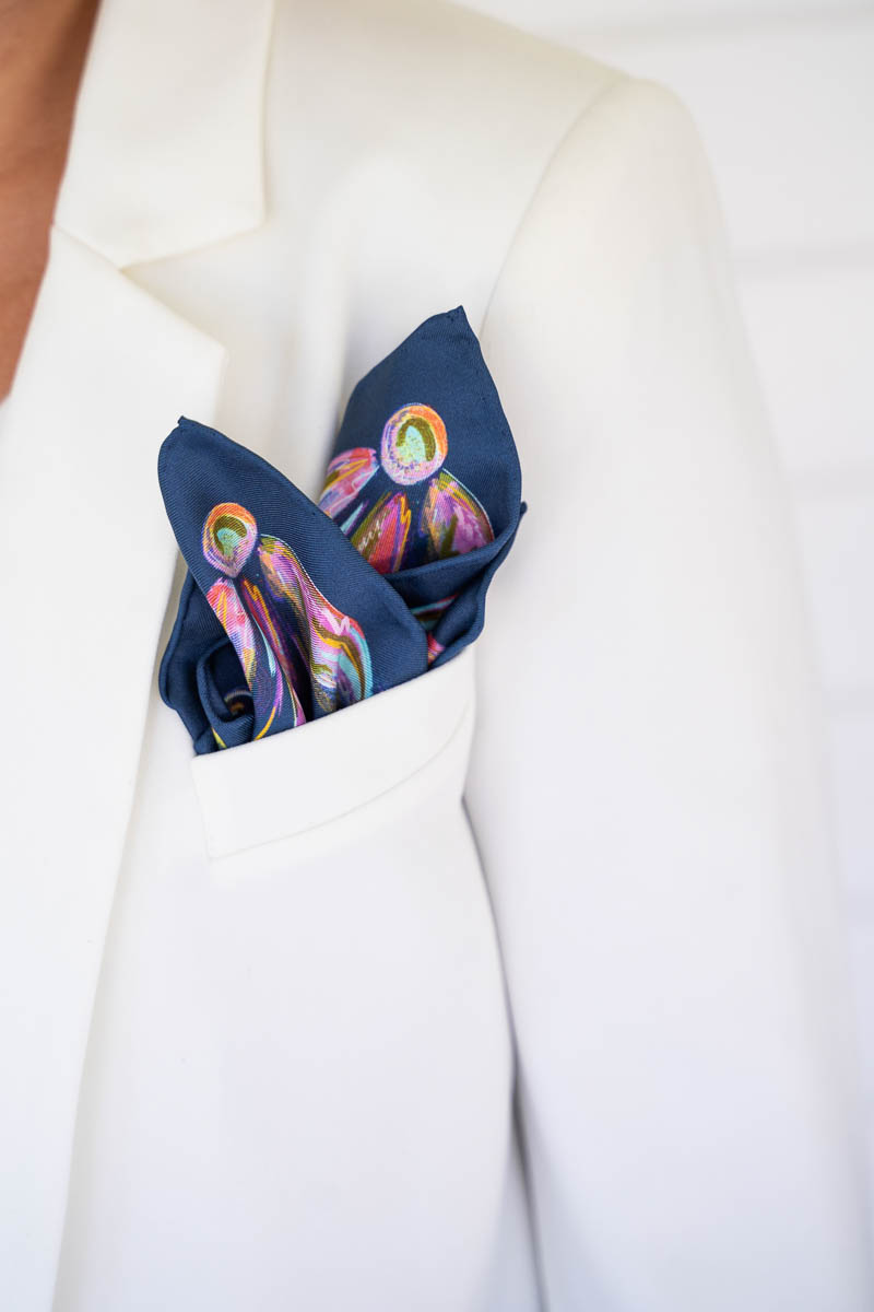 Nasze jedwabne poszetki mają ręcznie rolowane brzegi, dlatego tolerancja wymiaru wynosi do 5%.