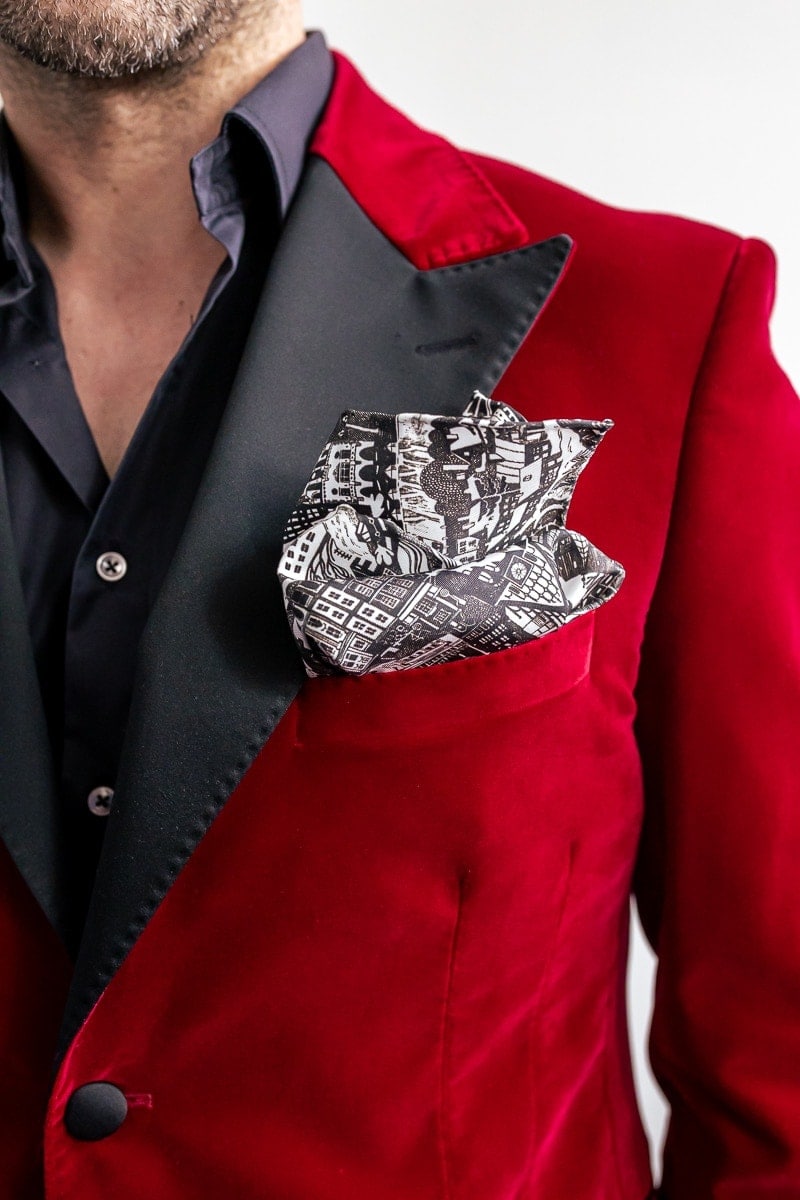 Nasze jedwabne poszetki mają ręcznie rolowane brzegi, dlatego tolerancja wymiaru wynosi do 5%.