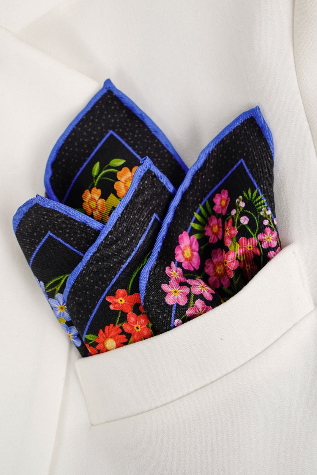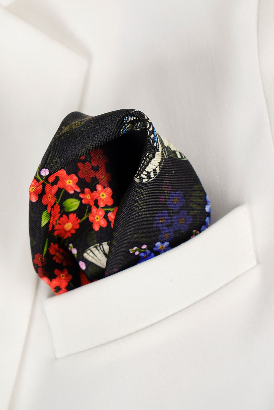 Nasze jedwabne poszetki mają ręcznie rolowane brzegi, dlatego tolerancja wymiaru wynosi do 5%.