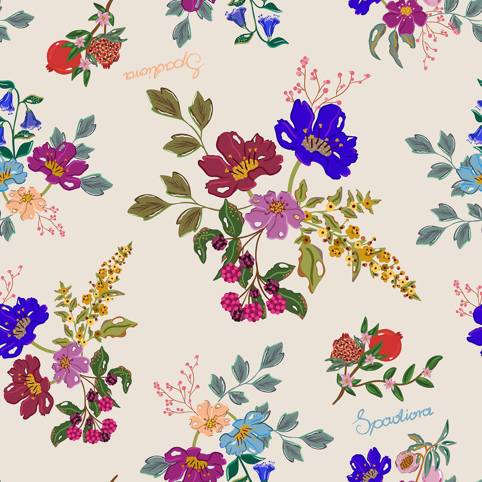 Ten, wydawałoby się na pierwszy rzut oka, klasyczny wzór porusza temat dojrzałości. Bardzo często spychanej na margines. Lubimy patrzeć na to, co piękne, gładkie, młode i powabne. Odwracamy wzrok, kiedy przychodzi nam patrzeć na dojrzałość w czystej naturalistycznej postaci. Często pomarszczonej, wyblakłej, pokrytej patyną, zmęczonej czasem, poranionej życiem. Dlatego, wśród pięknych kwiatów, liści i owoców ukryliśmy te jeszcze piękniejsze: dojrzałe, chcąc pokazać, że noszenie takiej nieidealnej apaszki w dzisiejszych czasach jest pewnego rodzaju odwagą. Chcemy to normalizować i głośno mówić o tym, że dojrzałość jest przepiękna i niesie w sobie zdumiewającą szlachetność.