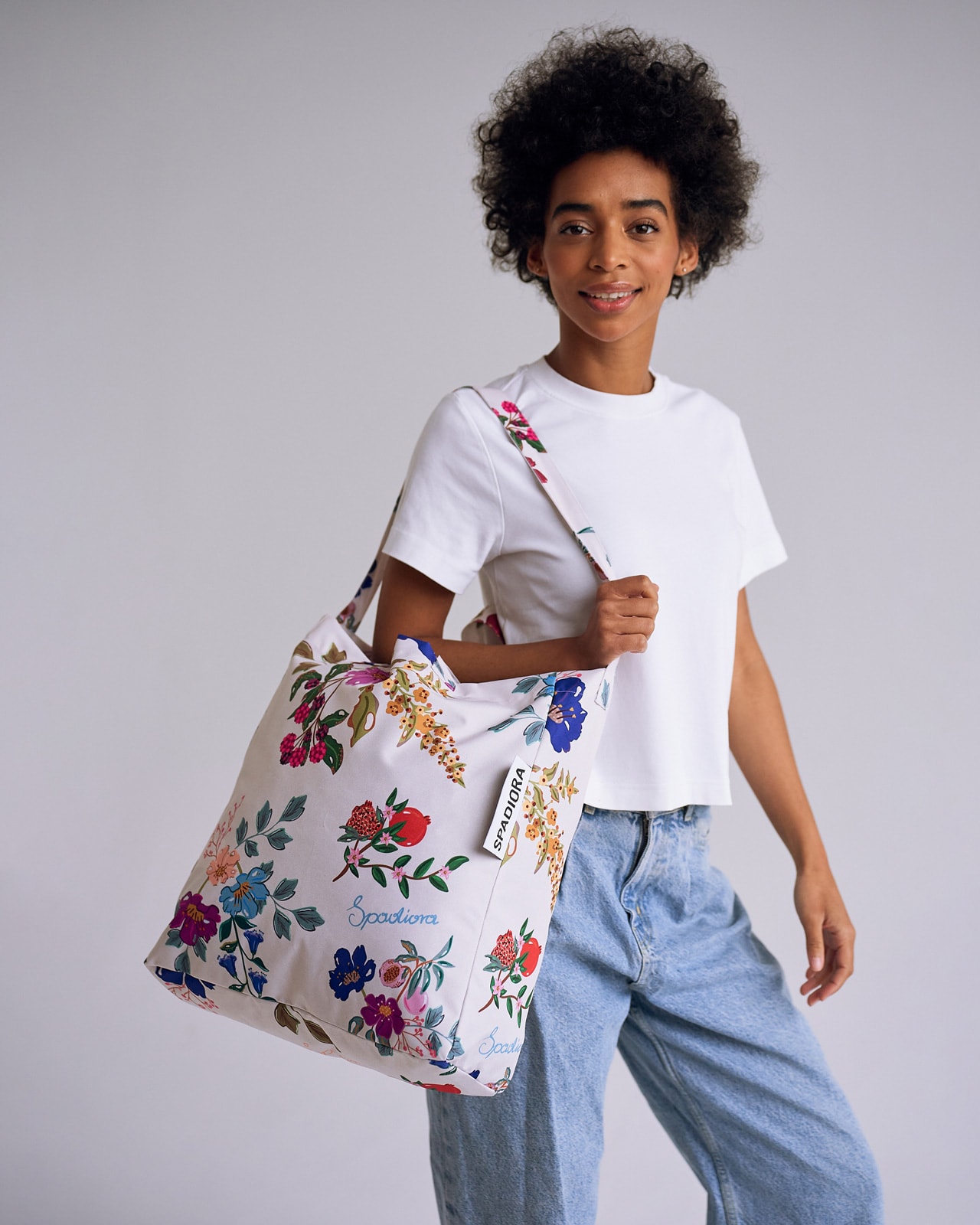 Torba w jednym z naszych kultowych wzorów to coś co musisz mieć w swojej kolekcji. Jest niesamowicie pojemna i uniwersalna. Możesz traktować ją jako codzienną torebkę lub dodatkową siatkę na zakupy czy rzeczy, które nosisz codziennie do pracy. Zastąpi Twoją ulubioną torbę na weekendowe wyjazdy lub sprawdzi się jako torba do dziecięcego wózka. Dwa rodzaje rączek pozwalają na dowolne jej noszenie - na ramieniu lub w dłoni. Metka z wyraźnym logo marki dodaje uroku.
